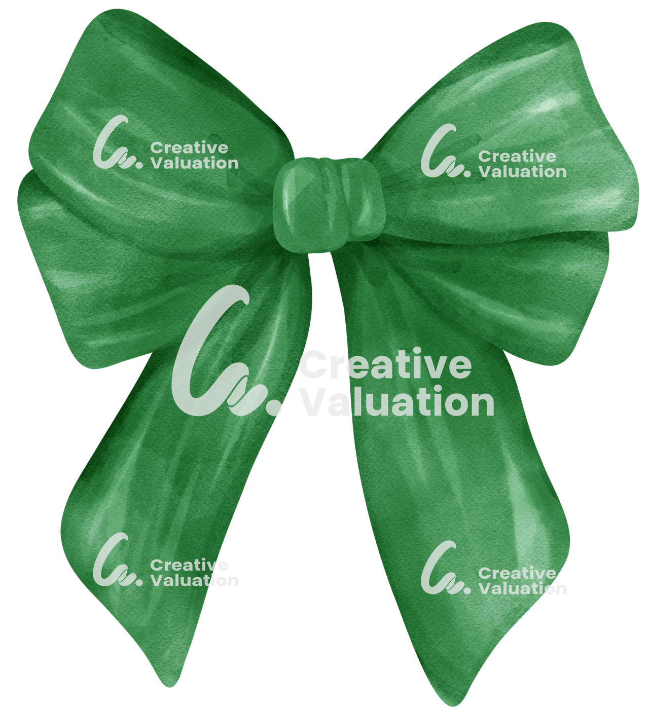 Coquette Green Ribbon Bow Watercolor Vintage Christmas Bow Painting in Retro Style