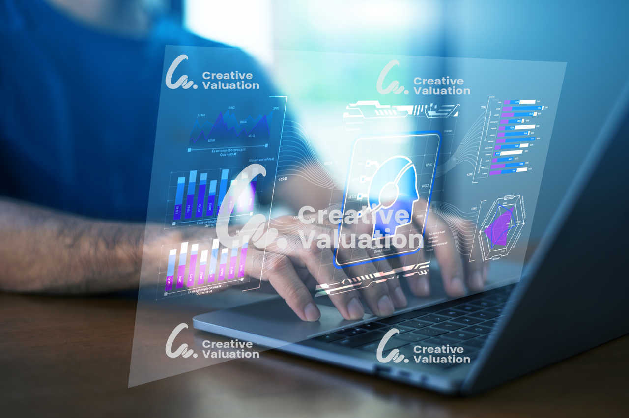 Business professional interacting with AI-driven analytics interface to visualize digital data, support automation, and enhance corporate decision making